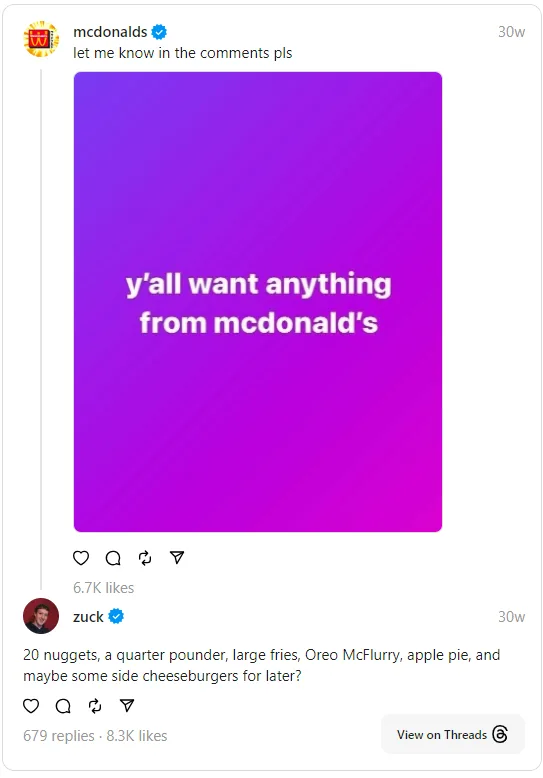 Mark Zuckerberg did not respond to any of the comments, positive or negative but one thing is for sure: this was definitely not the first time the CEO has shown love for the famous fast-food chain. Last year, he shared on Threads what he usually orders – 20 nuggets, a quarter pounder, large fries, Oreo McFlurry, apple pie, and a cheeseburger.