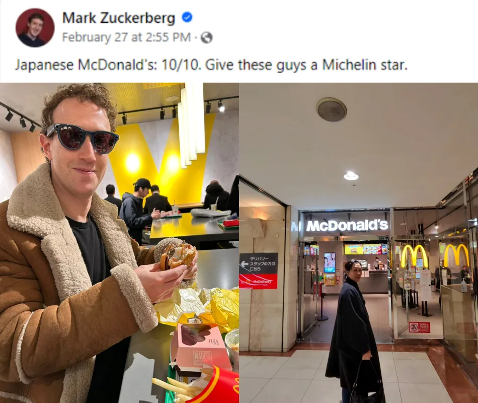 Facebook founder Mark Zuckerberg has been on holiday in Japan with his wife Priscilla Chan and one of their stops to visit was apparently a McDonald’s outlet. While it was not specified which outlet it was, the tech icon expressed that it deserves a Michelin star.