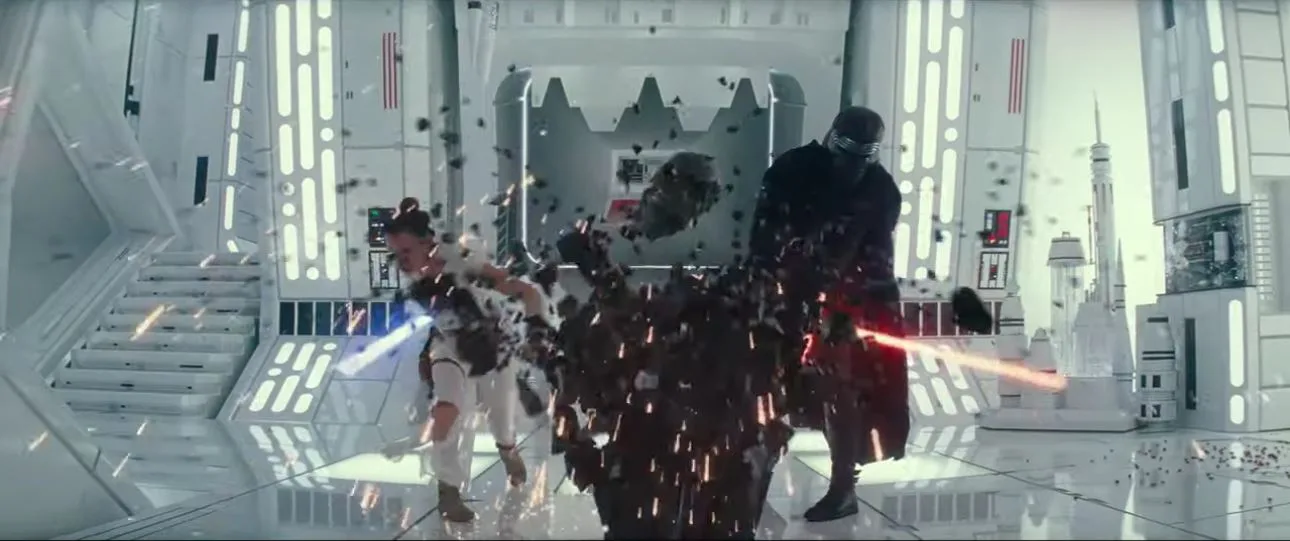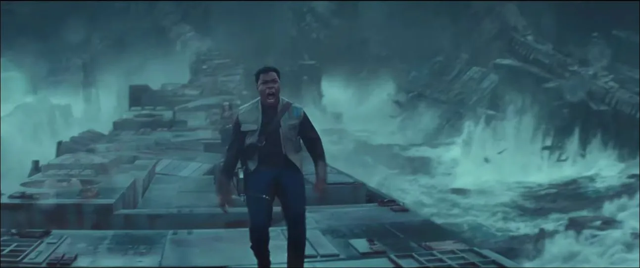 Previously we only know of Rey, Kylo-Ren and very likely Emperor Palpatine to be in the Death Star remains. But this new shot from the trailer shows Finn calling out to somebody (most likely Rey). Though the lack of shots of Finn in the Death Star have left many in doubt of the importance of the character in the scene.