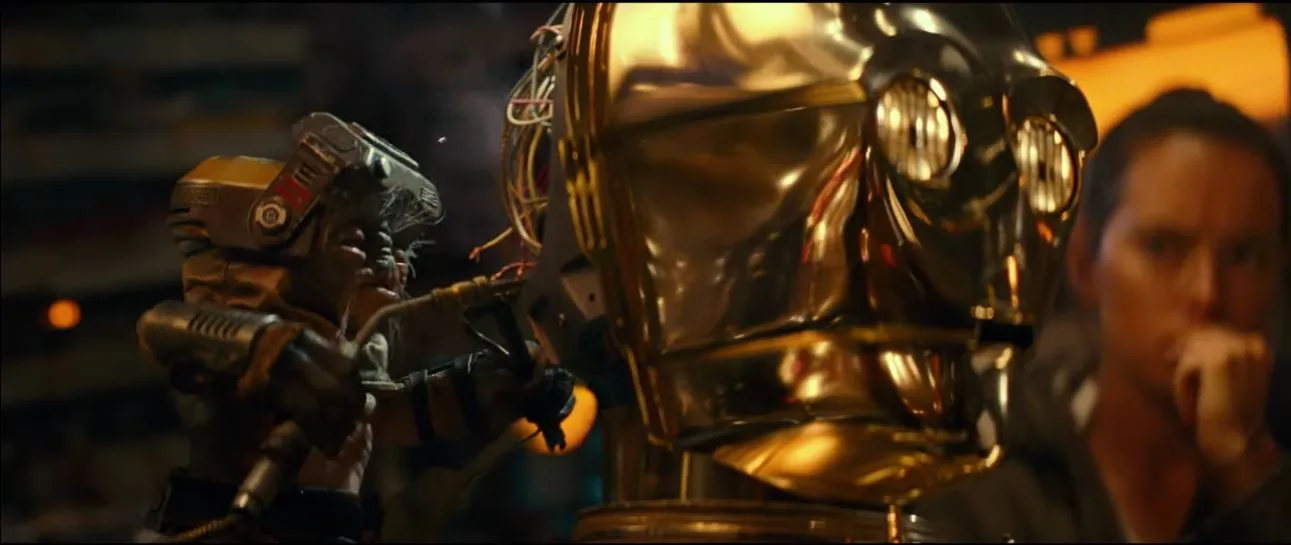 The trailer has also tease the death of a beloved character, C-3PO. The lost of the original character has been hinted at by a previous trailers, where the eyes of C-3PO turns red (an indication a bot has been hacked). The bot sacrifice is then enforced by the line, “Taking one last look sir, at my friends” uttered by C-3PO at the end of the scene as he takes a look at Rey and the others in the ship.