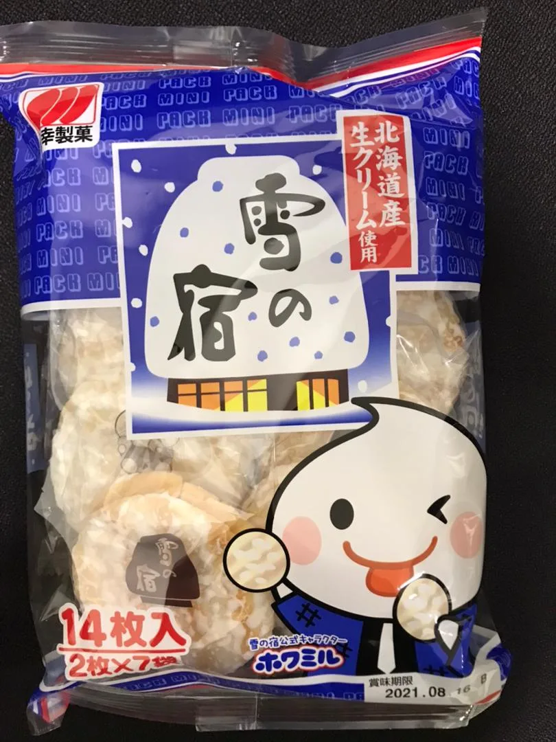 Snow crackers feature a salty round rice cracker topped with a sweet, milky white frosting. Its unique combination of sweet and salty, with a light and airy crunch makes them delicious on its own, but also great as an accompaniment to other dishes. If you’re feeling adventurous, snack on these crackers by dipping them into an ice-cold glass of fresh milk!