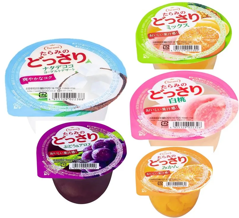 Tarami jellies are sweet and refreshing, perfect for perking up your palate. Enjoy slices of juicy fruits within the glass-like jelly, making this snack even more enticing!
