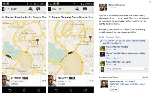 7. Users can send Uber to pick someone up. Have a friend who is not an Uber user? No worries. You, as an user, can request and send Uber to them. For example, Uber user, Denesh Dmaniac (refer to pic above) requested for Uber to pick his girlfriend up because he didn’t feel like sending her for her meeting. According to him, he was confident in letting Uber pick his girlfriend up because he is able to track the driver live on his app.