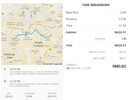 3. Uber users can split payment with friends. This is great because if users are travelling with a friend, they can share the cost with their friend by splitting the payment with him or her. For example if the fare comes up to a total of RM20, each passenger will only be charged RM10.