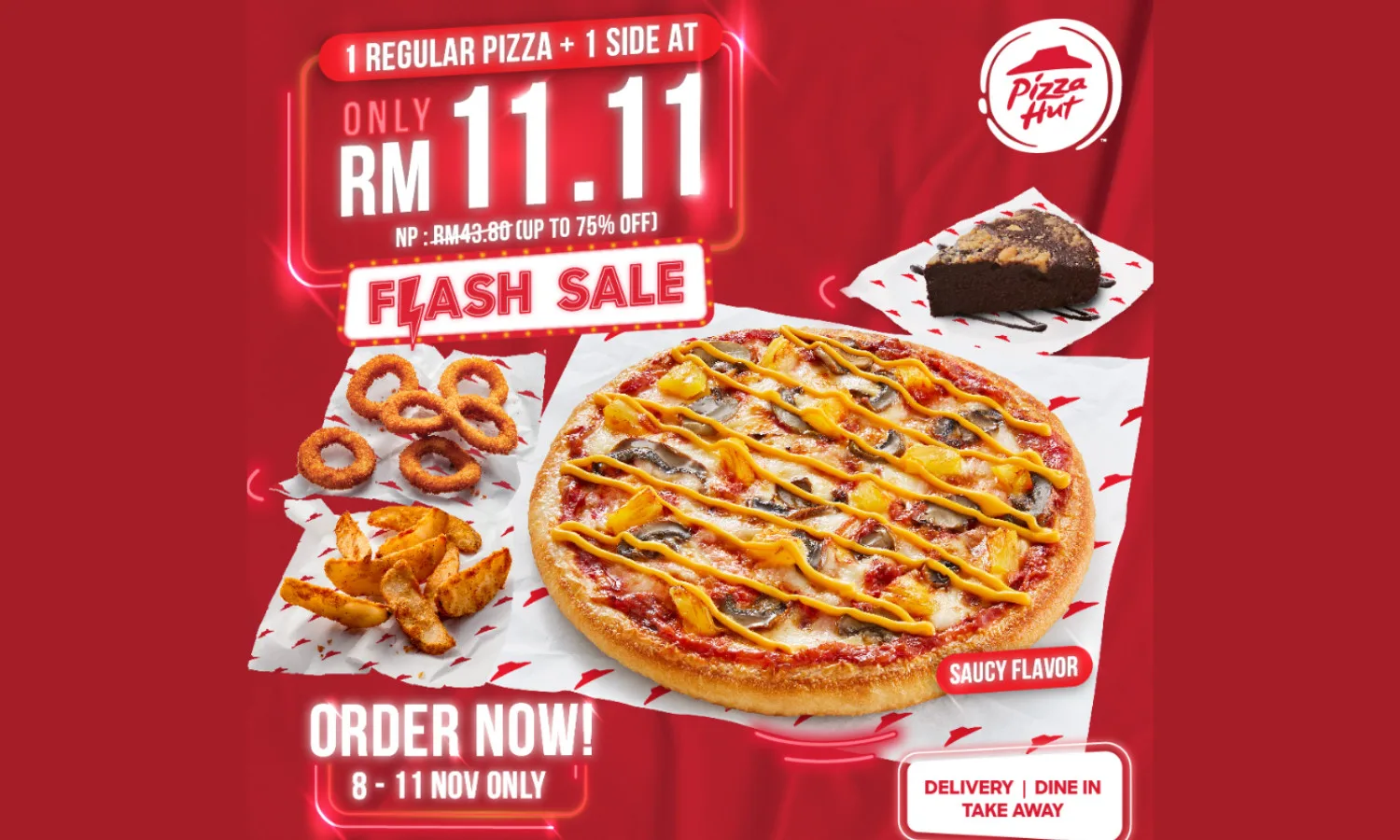 Heads up, pizza lovers, this one’s for you! The Pizza Hut 11.11 sale is back with a fantastic offer you can’t resist. From the 8th to the 11th of November, you can purchase a regular pizza, along with one side, for only RM11.11, which is up to 75% off the usual price!