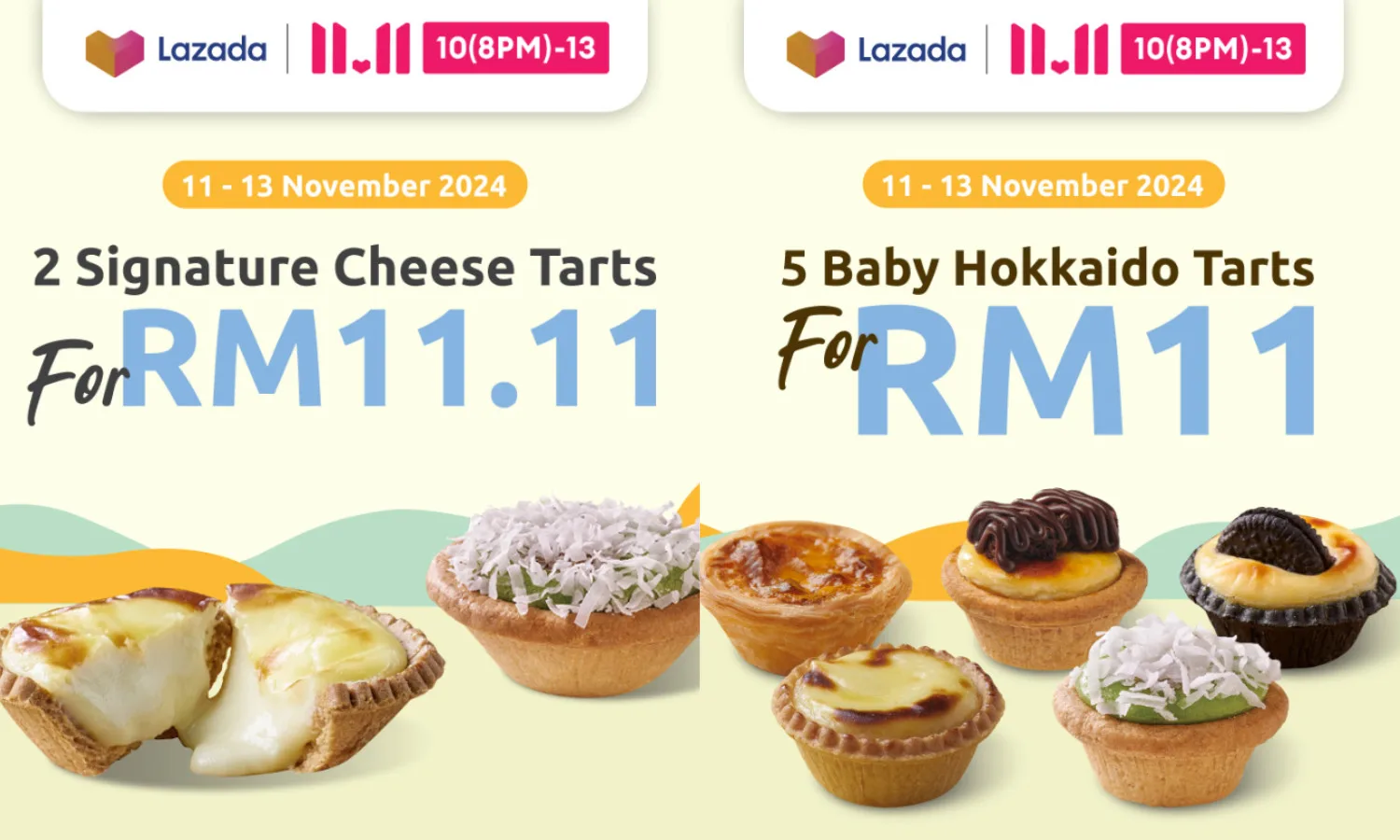 Mark your calendars for Lazada’s 11.11 sale to get a chance to spoil yourself with exclusive deals. From the 11th to the 13th of November, Hokkaido Baked Cheese Tarts is giving away 2 Signature Cheese Tarts for only RM11.11! Want a variety of tarts instead? You can give their 5-piece Baby Hokkaido Tarts a try, also at RM11! Indulge in the combination of their creamy, rich cheese and a crispy tart shell that just melts in your mouth, which is available on Lazada, so go ahead and satisfy your cravings without having to break the bank.