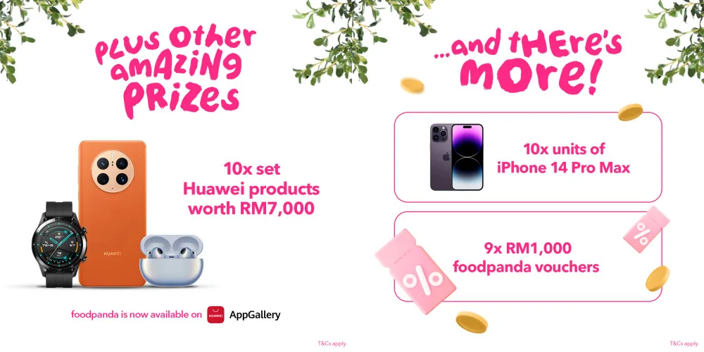 On top of the grand prize, there are many other awesome prizes you can win including a set of Huawei products worth RM7,000, an iPhone 14 Pro Max (128 GB) worth RM5,799, and a RM1,000 foodpanda voucher. How crazy is that?