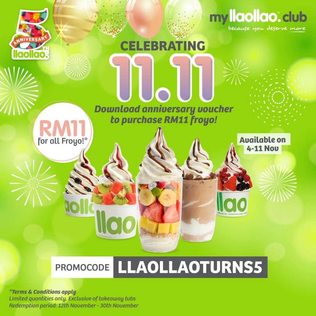 There definitely needs to be a yummy and refreshing sweet to follow our 11.11 celebratory meal! And since we’ll be saving on everything else, why not save on dessert as well with llaollao. In conjunction with llaollao’s 5th birthday and 11.11 promo, we will be given a voucher to tuck into any delicious froyo for just RM11. All you have to do is insert the promo code on llaollao’s app to download the voucher and then redeem it at llaollao’s outlets.