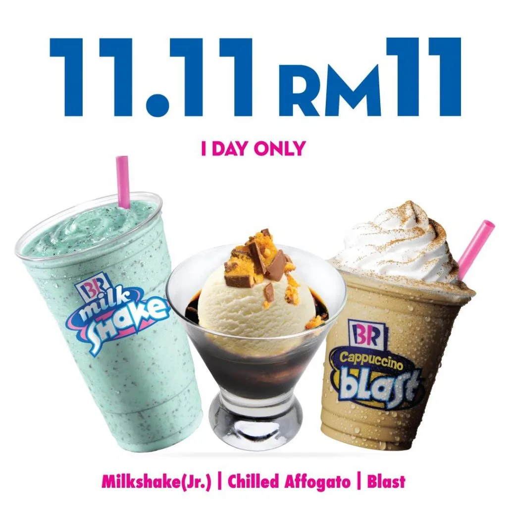 Tuck into Baskin-Robbins’ milkshakes (Jr.), chilled affogatos and blasts priced at only RM11 for just one day. So, don’t forget to keep some space in your tummy on 11.11 to enjoy all this yummy goodness.