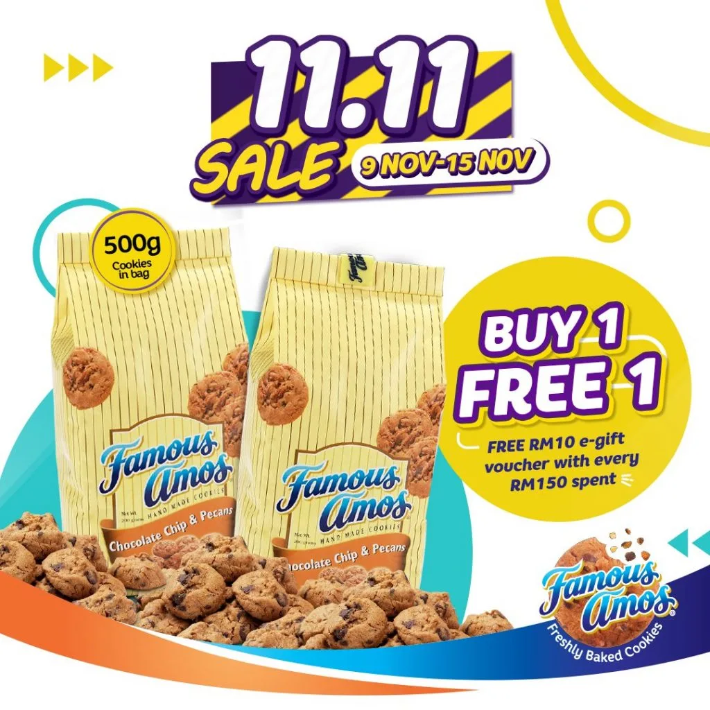Mmmm, heavenly chocolate chip cookies. Our mouths are watering just thinking about them! And since Famous Amos already knows how much we love their baked goodies so they’re conducting another Buy 1 Free 1 online sale for their 500g cookies in a bag. More cookies for the price of one??? Sounds too good to be true! That’s not all, you can also get a FREE RM10 e-gift voucher for every RM150 spent.