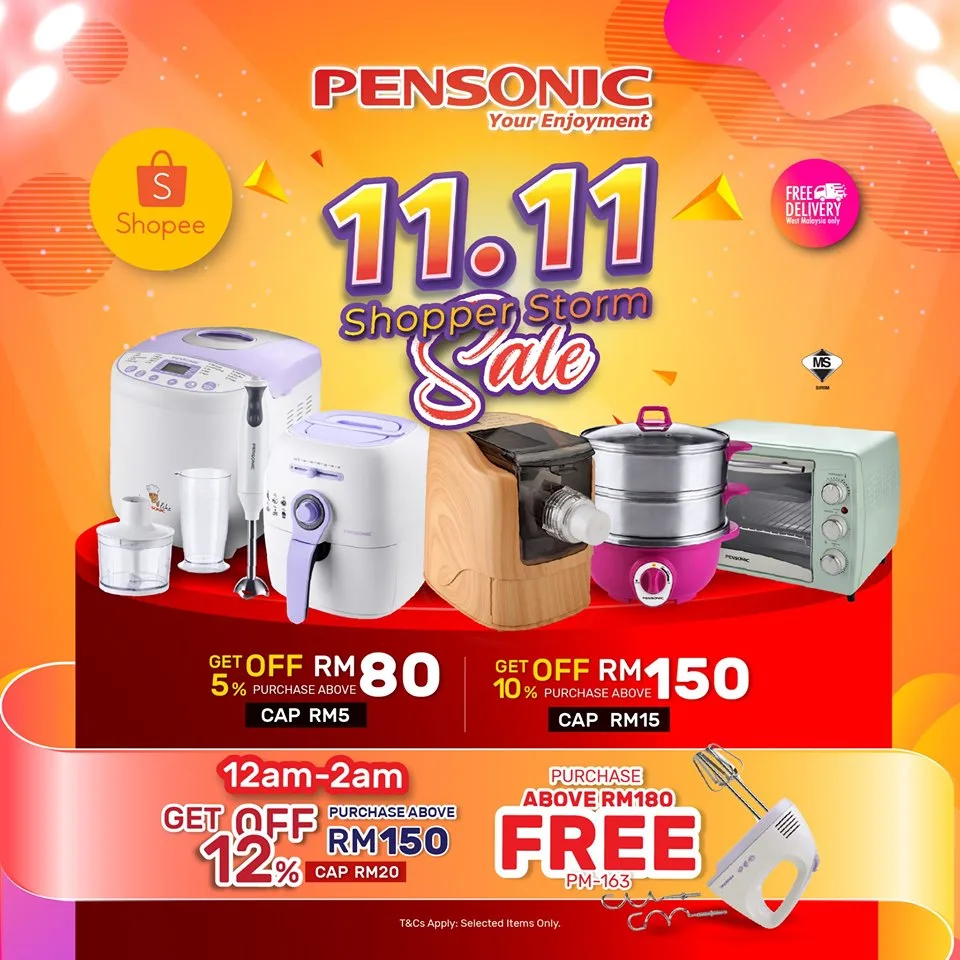 It’s raining discounts and prizes at Pensonic’s ‘11.11 Shopper Storm Sale’. Thanks to this thundering sale, you can now enjoy promotional prizes, an additional 12% discount, and even receive a free Pensonic mixer with purchases above RM180!