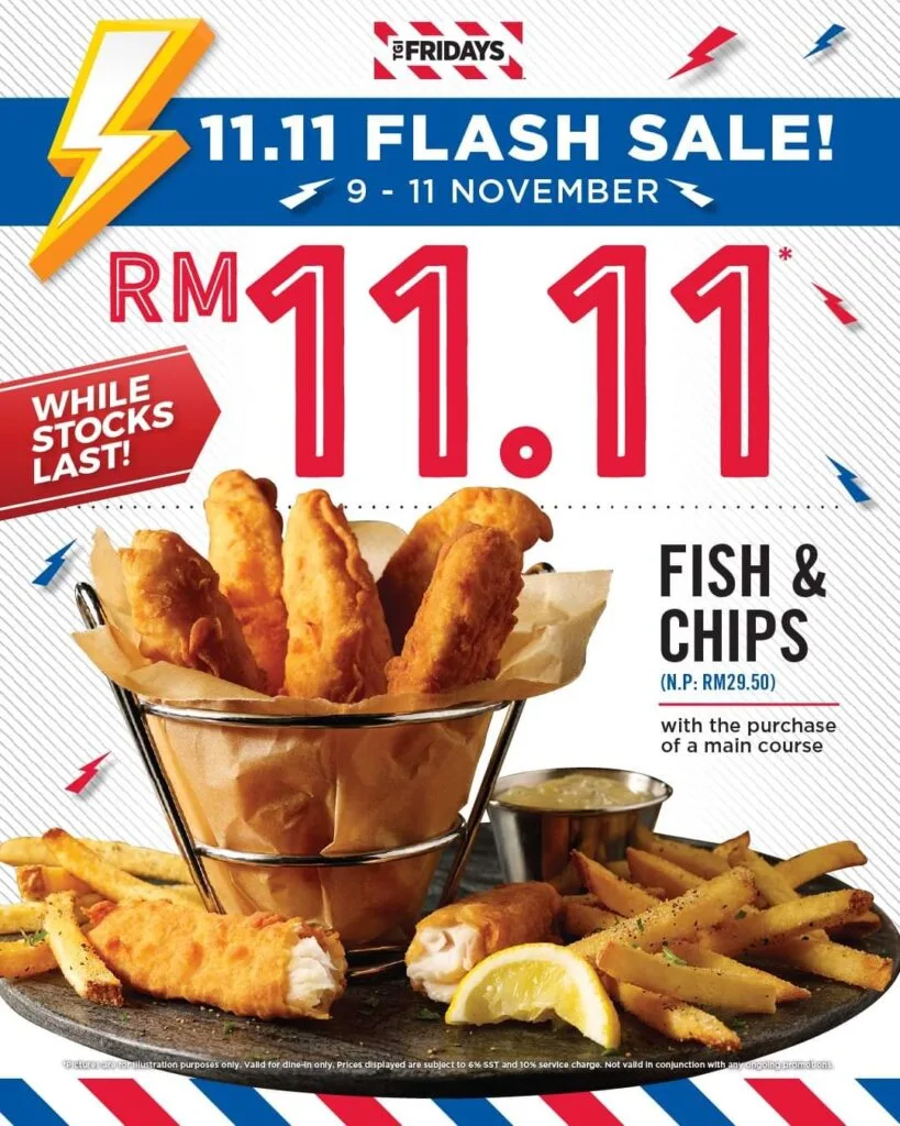 However, if you’re not a holder of Kenny Rogers Roasters card, fret not, we have another promotion for you this month! With the purchase of a main course, TGI Fridays are offering their Fish and Chips only at the price of RM11.11 — more than 50% discount from the normal price. Grab it while you can, as the promotion is only limited to 100 units per outlet.