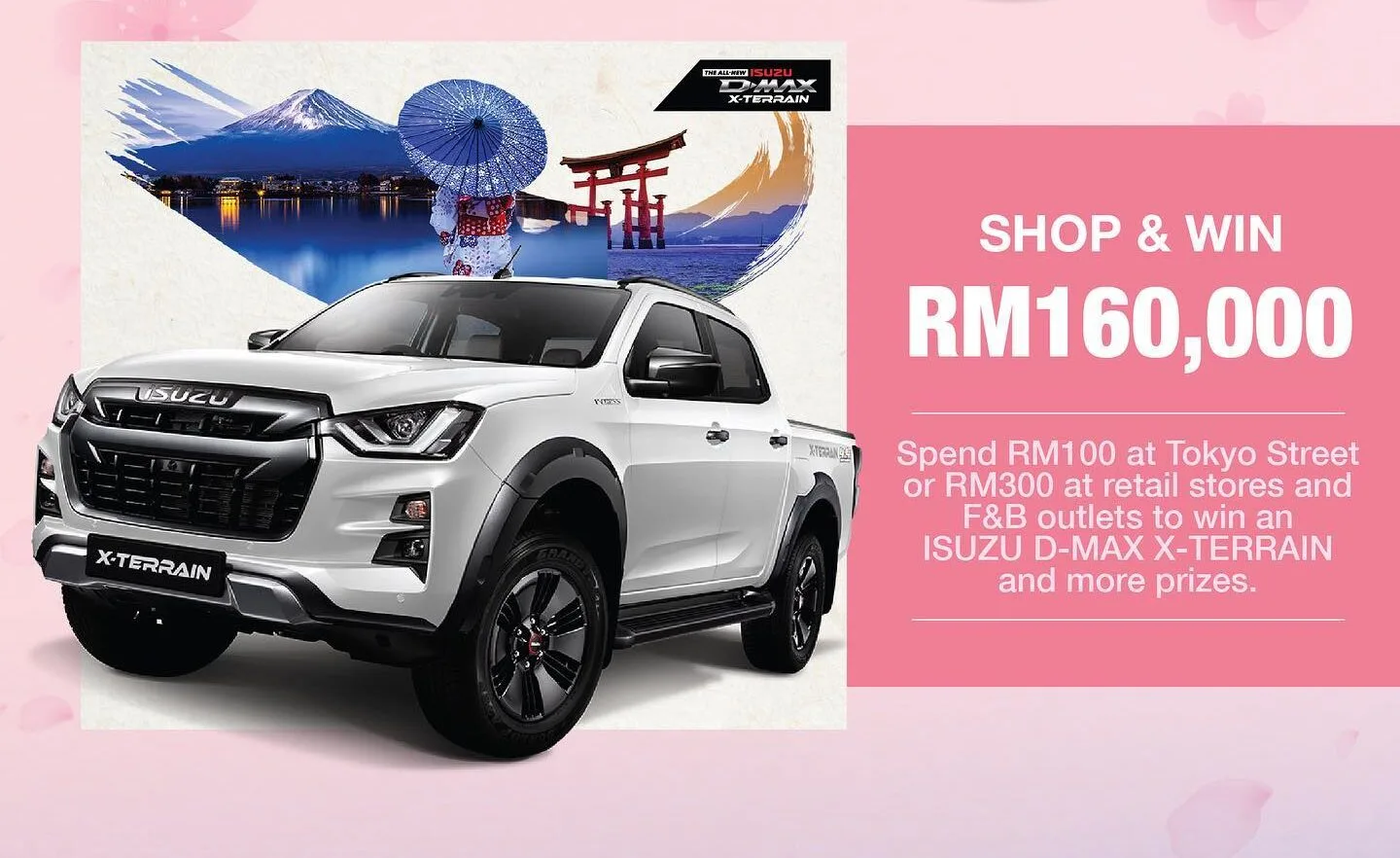 There are many things to do and buy at Tokyo Street! Spend over RM200 through a combination of two receipts at Tokyo Street or one receipt mall-wide, and you will be eligible to participate in a Lucky Draw contest. Stand a chance to win more than RM160,000 worth of prizes from Isuzu, with the grand prize winner driving home a new Isuzu ride!