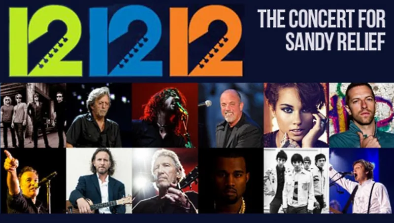 A historic all-star “12-12-12” line-up includes iconic performers and celebrities such as:
