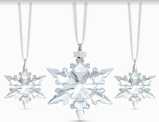 Light up your home this Christmas with these shimmering Swarovski decorative ornaments. This Swarovski set consists of an Annual Edition ornament and two Little Snowflake ornaments that are inspired by the frosty magic of snowflakes and shine with the signature Swarovski sparkle.