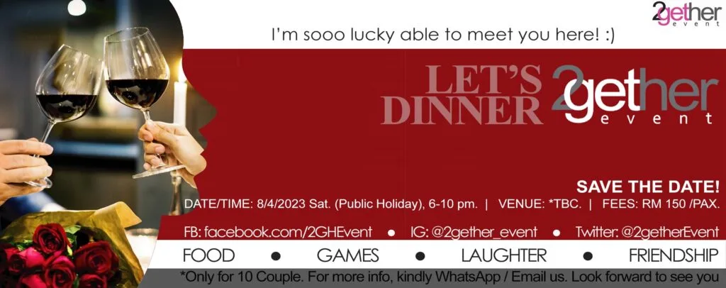 A not to be missed event on 8th April 2023 for busy working professionals and business executives to meet gorgeous, like-minded people. No more vague online dating, meet more singles in a night than one could possibly meet in a year! Seats are really limited, so do register ASAP to avoid disappointment. Enjoy a time of food, game, and laughter as you get to know someone new and someone who could potentially be THE ONE! Click here to know more.<>