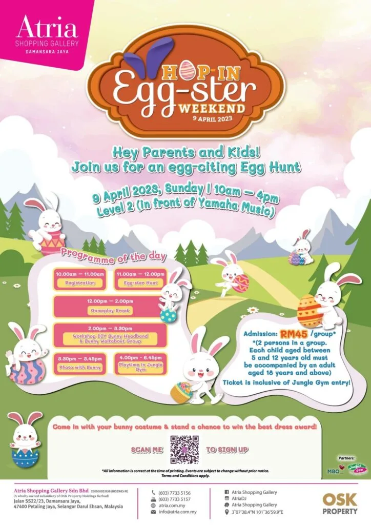 Wear your bunny costume and head to Atria Shopping Gallery to go hunting for some colorful eggs and sweet treats! For only RM45 per group (1 adult and 1 child), you’ll get: