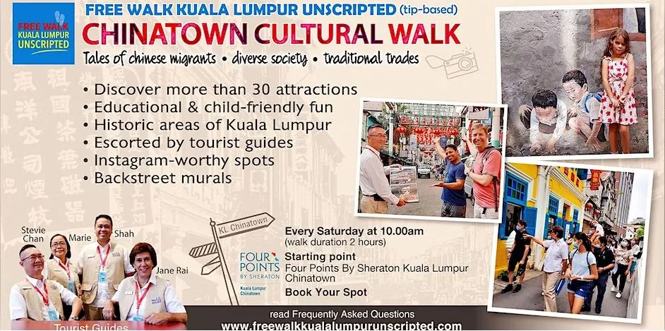 Look into post-war shophouses, conventional fare, fusion cuisine, and contemporary cafés, pubs, and restaurants. The Chinatown stroll is based on tips. The standard tip for the guides has been between RM40 and RM60 per passenger. Click here for more info.