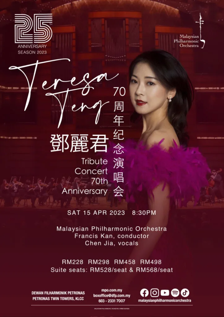 Among the songs that will be presented by the MPO and Jia are Goodbye My Love, So Sweet, The Story of a Small Town, Star, Thousands of Words, May All Be Well and The Moon Represents My Heart, notably Teng’s most celebrated song that has become iconic in Chinese culture.