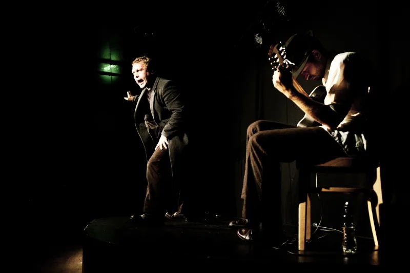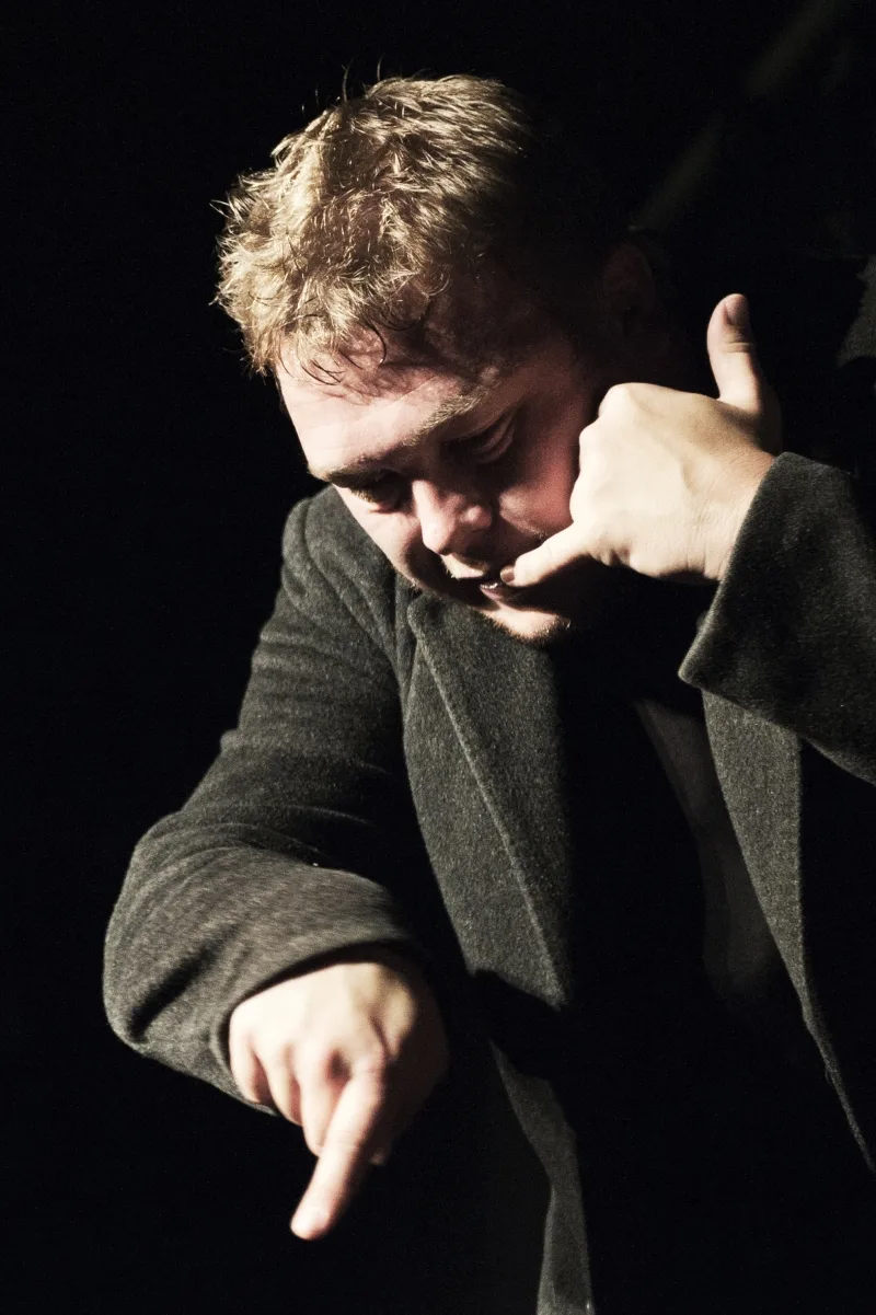 “I kind of just made sound effects because I had to. So if I wanted the character to smoke, I’d make this lighter sound. I had no other way to do it and it kind of worked. Often the sound effects are a little crude, but because I ally them with a mime the audience can create the image in their heads about what’s happening onstage with a little bit more ease. The sound effect plus the mime plus the music, the lighting, costume, can go some way into nudging the audience into the world you’re hoping they can follow you through.”
