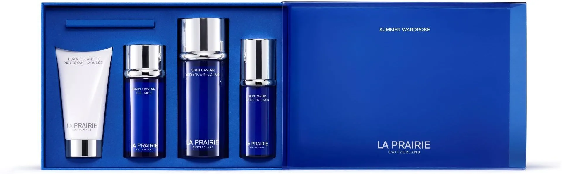 The La Prairie Summer Wardrobe brings together four of the brand’s beloved caviar-infused icons in a travel-ready quartet.