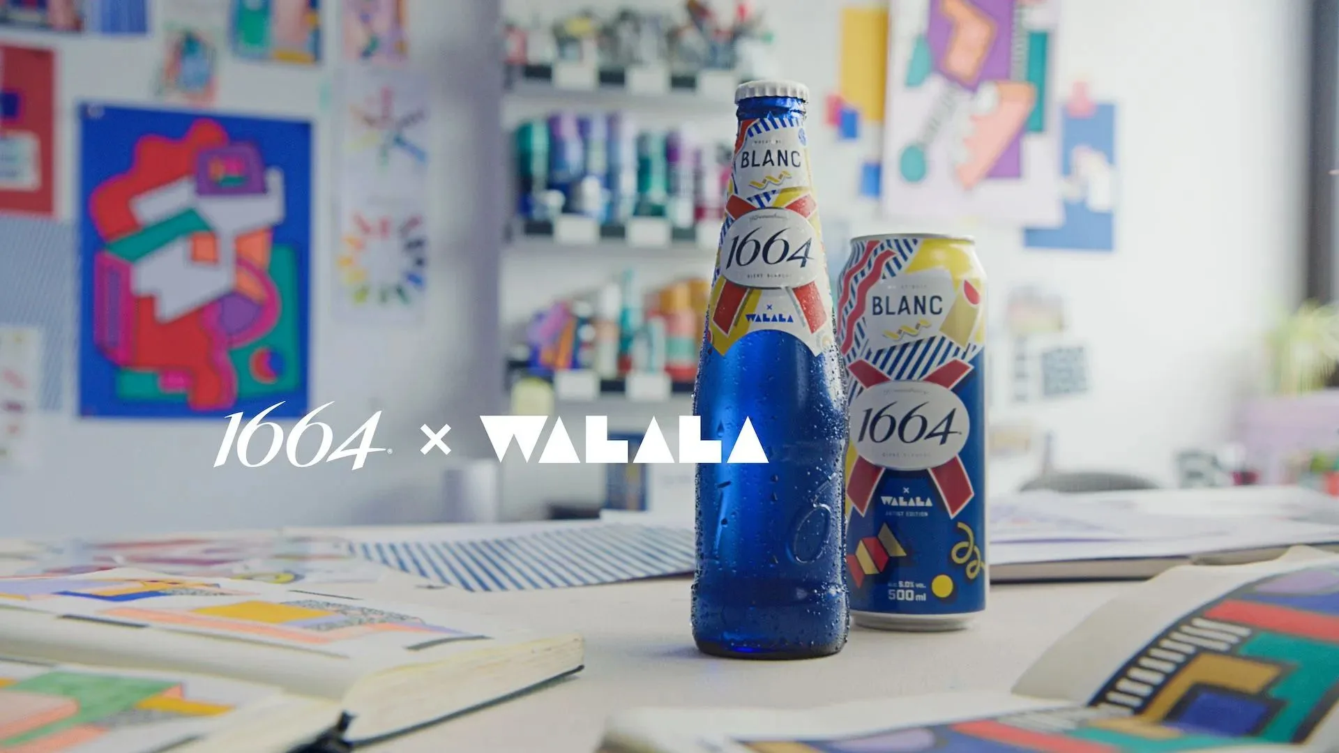 Walala’s work usually takes over buildings, streets and giant installations, but now her statement-making patterns are wrapped around 1664’s classic blue and white identity, turning the can into something you’d proudly place on your dinner table because it looks like a design object, not just a drink.