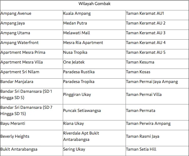 As a result, 120 areas in Gombak and 57 other areas around Kuala Lumpur (including 119,630 registered customer accounts) will experience water disruption tomorrow. In the meantime, the public are advised to use water sparingly.