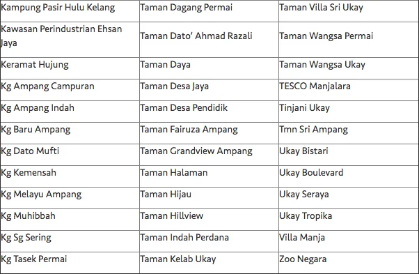 “Air Selangor is issuing this announcement notice so that customers can make the necessary arrangements ahead of the temporary water supply interruption for 23 hours following the sluice valve replacement, which will begin at 9pm Thursday (31st Oct),” said the company’s Customer Relations and Communications Department chief Abdul Raof Ahmad. Water supply is expected to resume by 8pm on Friday (1st November).