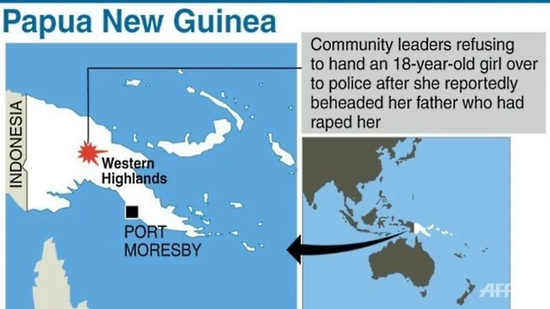 An 18-year-old girl beheaded her father with a bush knife after he raped her last Tuesday night in their village in the poverty-stricken Pacific nation’s Western Highlands. The report cited a pastor as saying the father, in his mid-40s, had three other children and raped his daughter when they were alone in the house after the mother and the other siblings visited relatives.