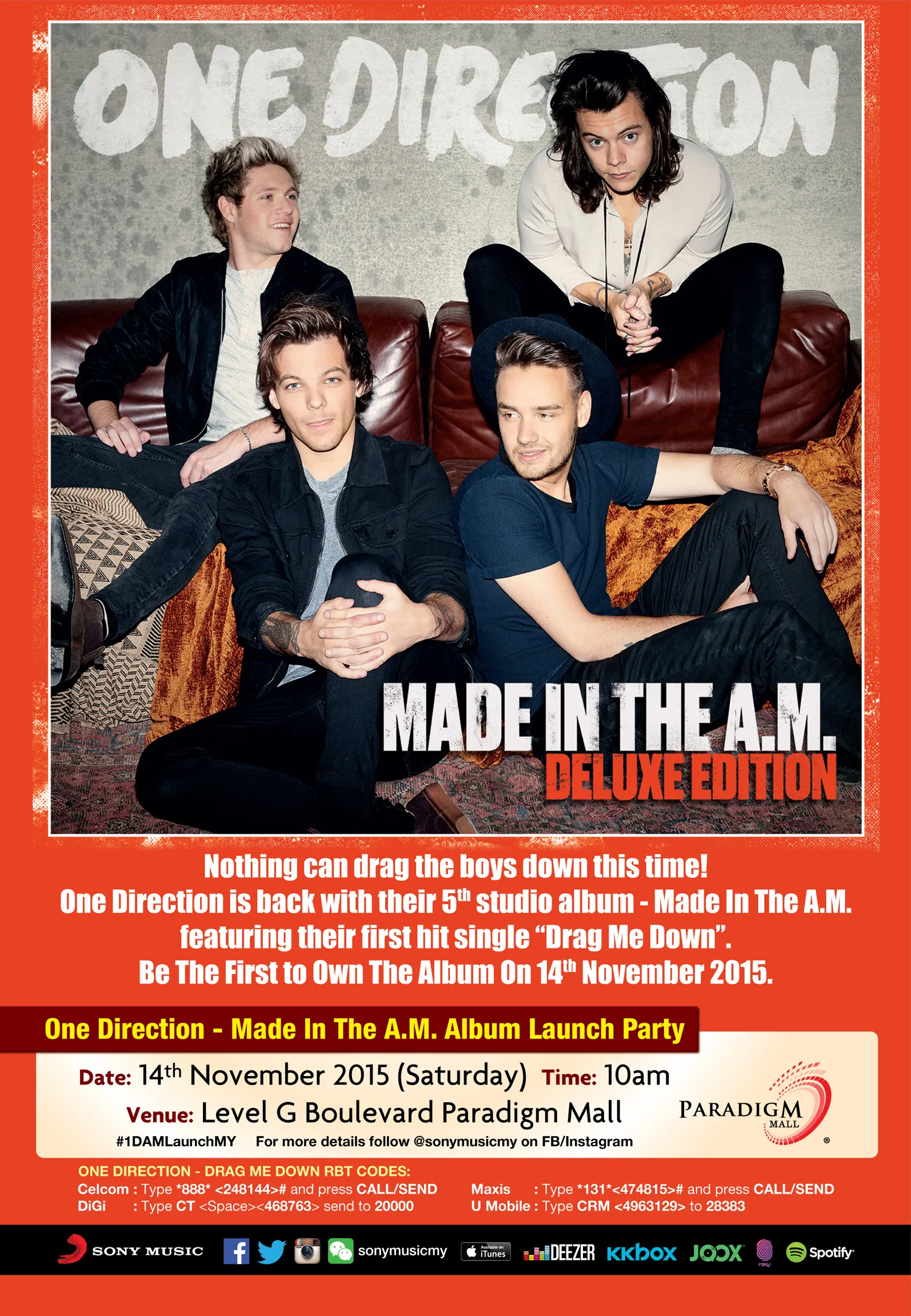 In conjunction with the album release, Sony Music Entertainment Malaysia will be hosting the “One Direction – Made in the A.M” launch party on 14th November. There will be games, activity booths as well as prizes to be won at the event.