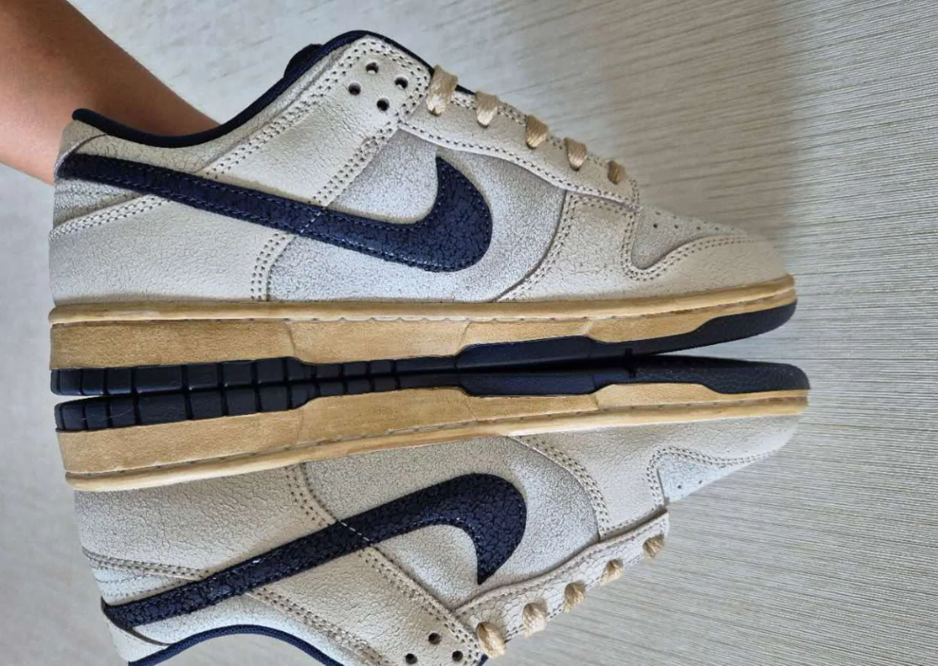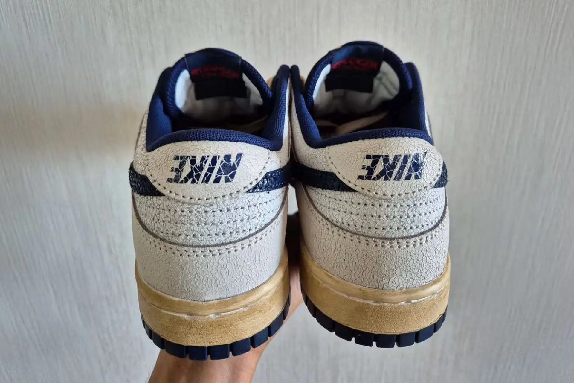 The first colourway, Phantom and Midnight Navy, has already surfaced. It features cracked leather uppers, a yellowed midsole for a worn-in feel, and flipped branding that nods to The Upside Down.