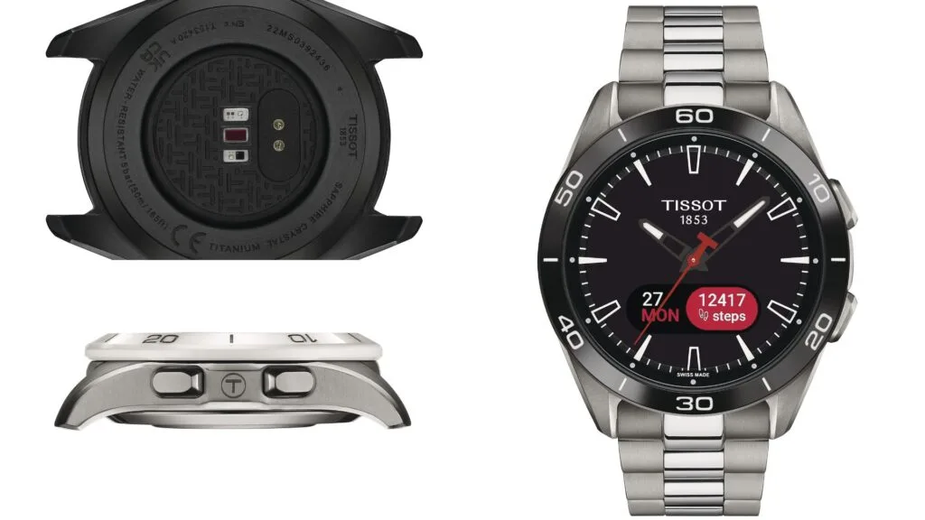 The T-Touch Connect Sport is a marvel of design, encapsulating noble materials with state-of-the-art technology. The photovoltaic cell, combined with Super-LumiNova®, ensures visibility even in dim light. The ease of interchanging between the lightweight titanium bracelet and the versatile silicon strap further enhances user convenience and style. Surrounding the dial is an elegant ceramic bezel, further elevating the watch’s aesthetic, making both traditional watch lovers and sports enthusiasts value this piece.