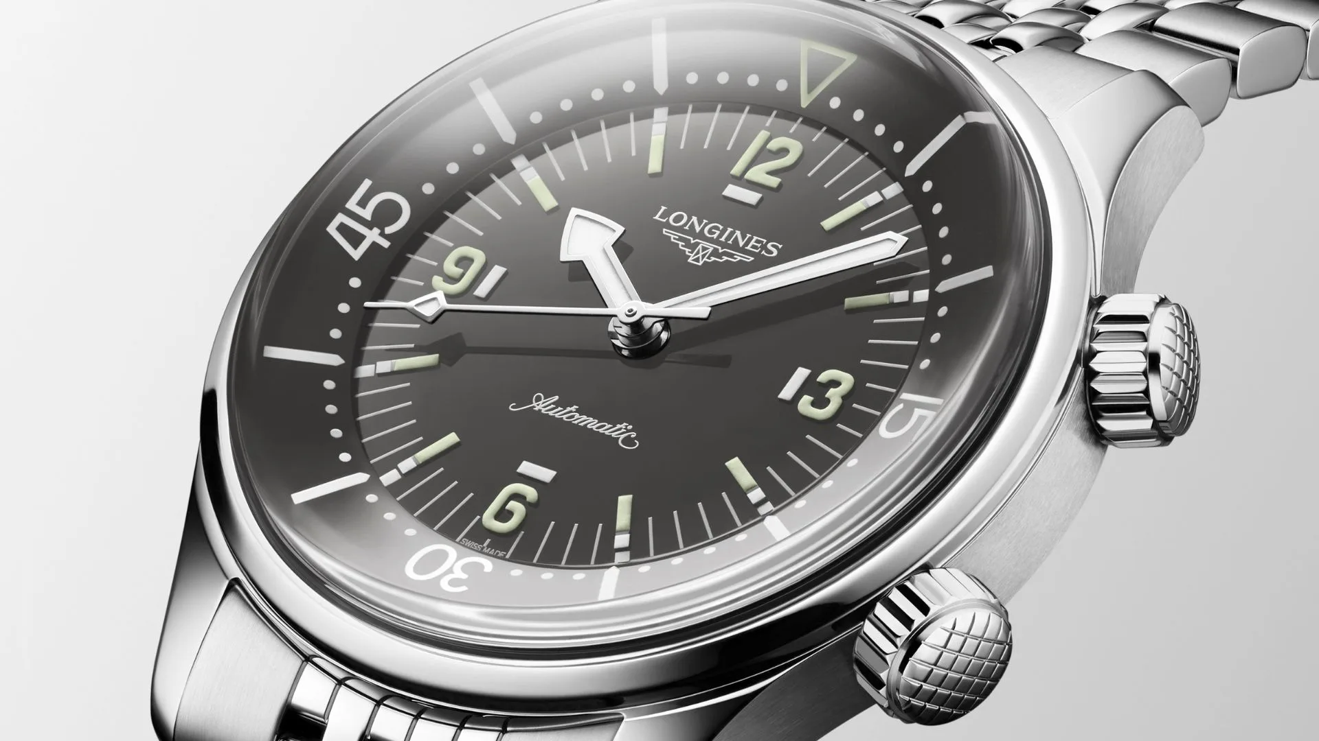 An icon of the brand for 65 years, the Legend Diver line boasts a unique heritage in the world of watchmaking. As early as 1937, the brand launched the very first chronograph with water-resistant pushers, which it patented in 1938, followed by its first dive watch in 1958. A year later, Longines developed a watch specially designed for underwater exploration with a revolutionary Super-Compressor case with an internal rotating bezel and two screw-in crowns: the iconic design of the Longines Legend Diver was born.