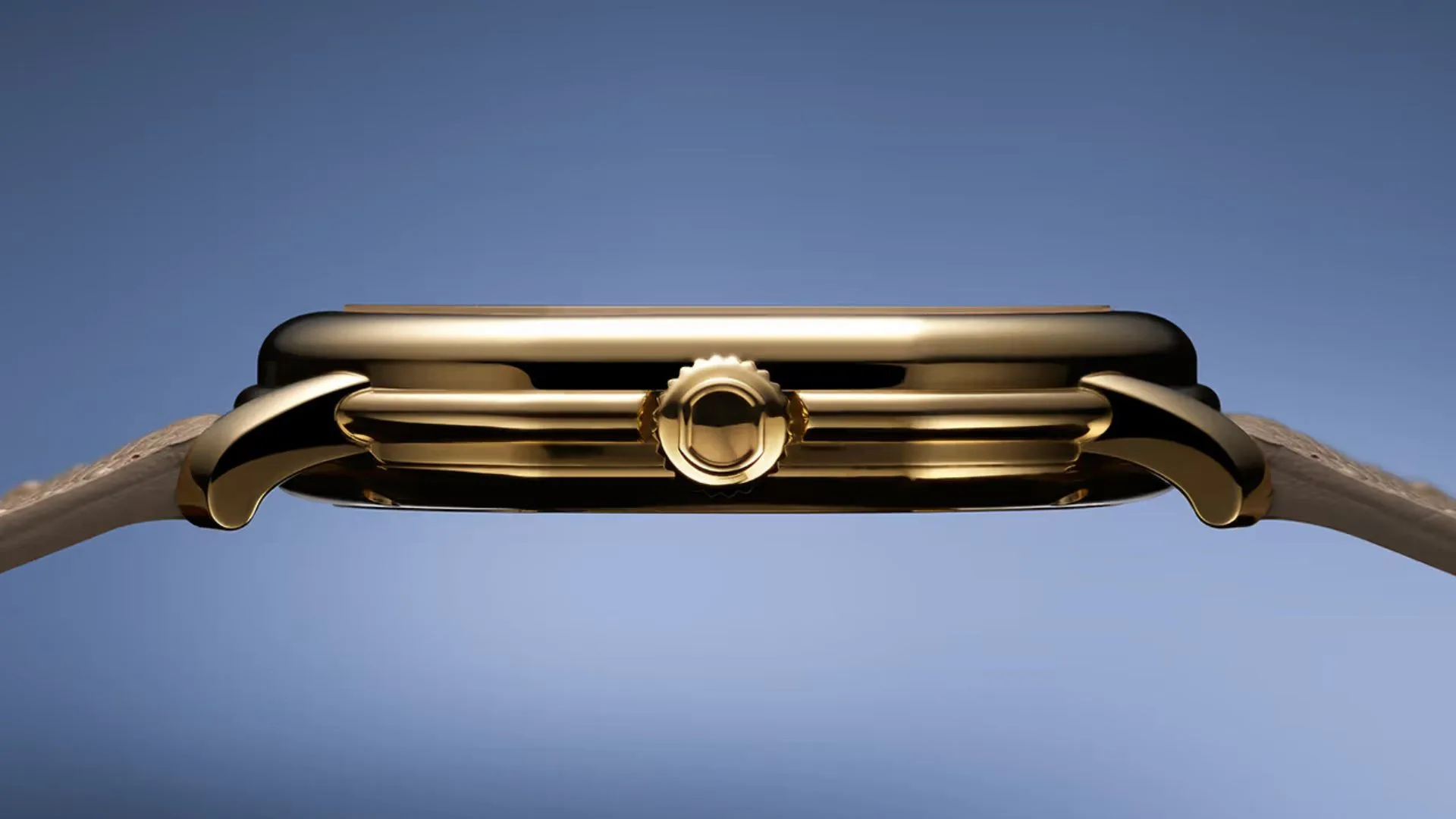 As mentioned earlier, the piece comes in a slim profile, registering at 7.7mm in thickness, but it also has a diameter of 35.5mm, guaranteeing that you can tell the time and see the details in the watch at a glance. Despite this smaller frame, each lug is also produced separately and was carefully soldered to the case body by hand. Tying it all together is a light beige-brown calfskin strap which complements the gold, further elevating it, while also breaking its monotony.
