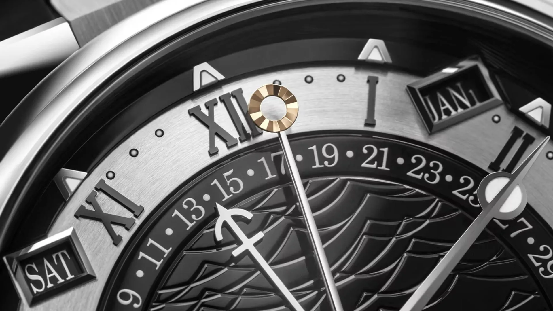 This chronometer is an embodiment of timekeeping excellence, and the hard work that was poured into creating it must be shared for all to see. Which is why this special chronometer features an open caseback for you to observe the delicate yet mesmerising gears at work. Through that window, you may see the 581DPE calibre wound up with a platinum peripheral rotor with wave motifs. The back has also been further embellished with a hand-chiselled image of the 1752 Royal Navy warship, the Royal Louis.