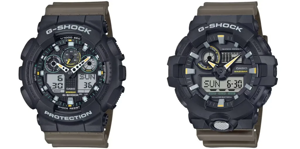 G-SHOCK has introduced its Two-Tone Utility Colour Series, which consists of five new references with designs coded in Gorpcore. The new line, which focuses on beige, olive green, and black, combines tough construction, practical features, and utilitarian design, resulting in pieces that are ideal for outdoor enthusiasts and intrepid travellers.