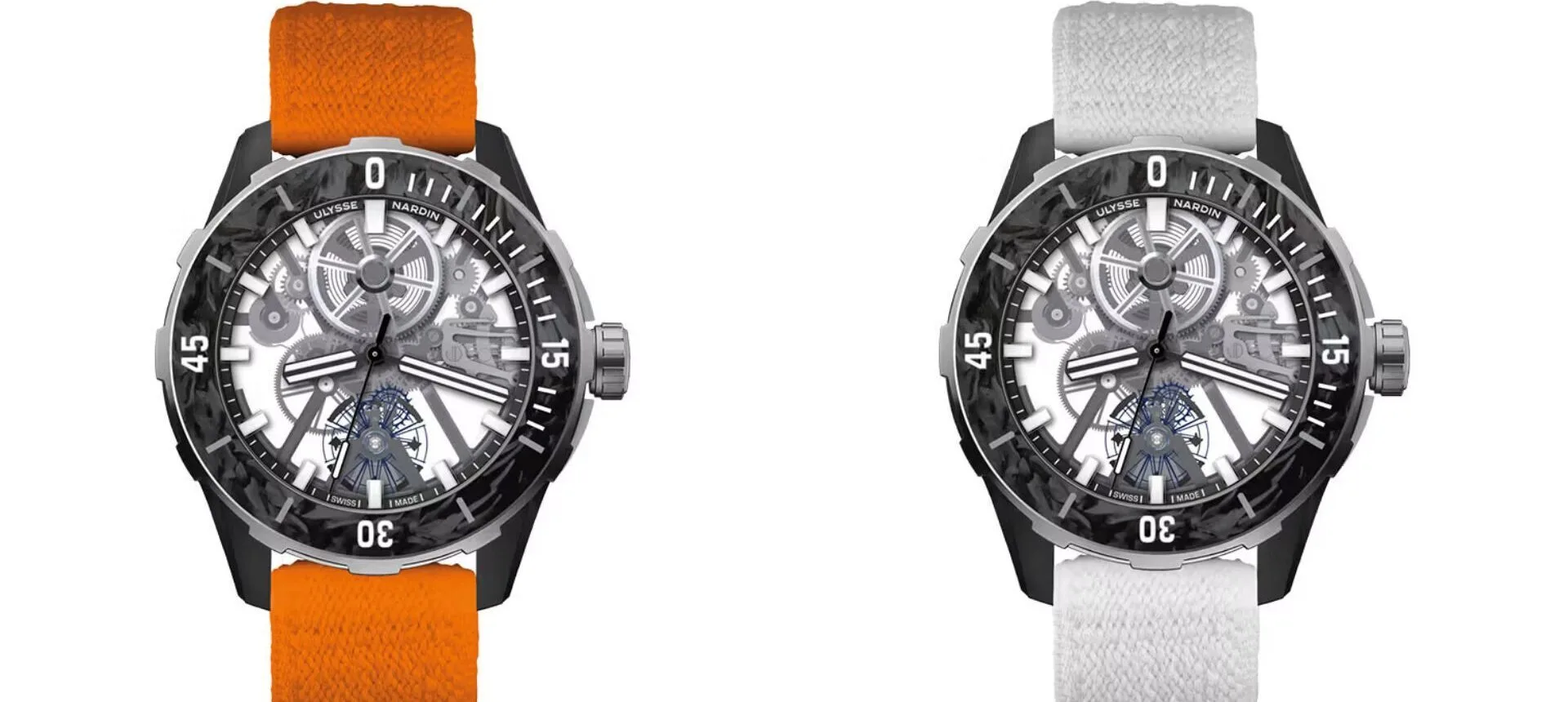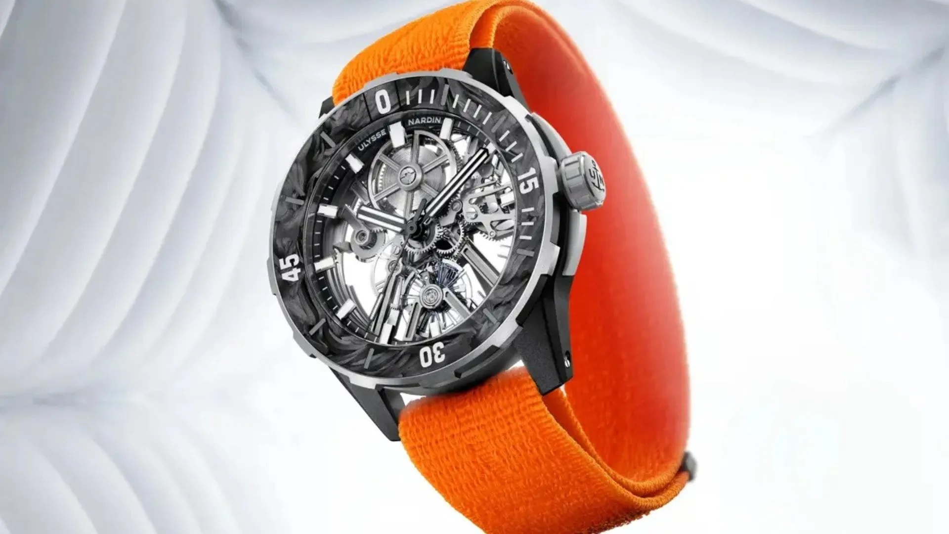 Made entirely of recycled carbon fibres, CarbonFoil is used to forge even the bezel.
