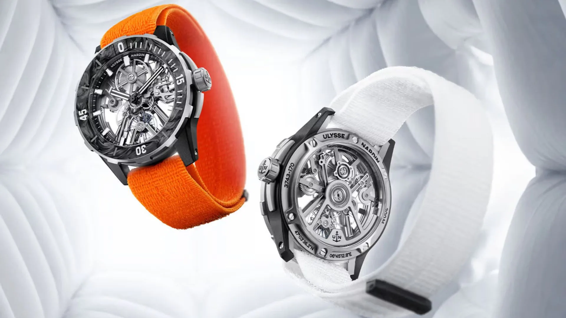 The Diver [AIR], which has two orange and white elastic straps that can be switched out, is water-resistant up to 200 metres and offers tool-free strap switching and a 90-hour power reserve for practical performance.