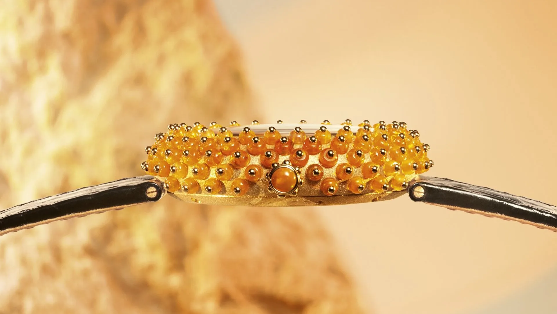 Inspired by the shape of a sea urchin, this luxury timepiece is covered in 137 fire opal gems, giving it a mesmerising glow. The bright orange cornelian dial adds to its fiery look, making it feel like a rare treasure from the ocean.
