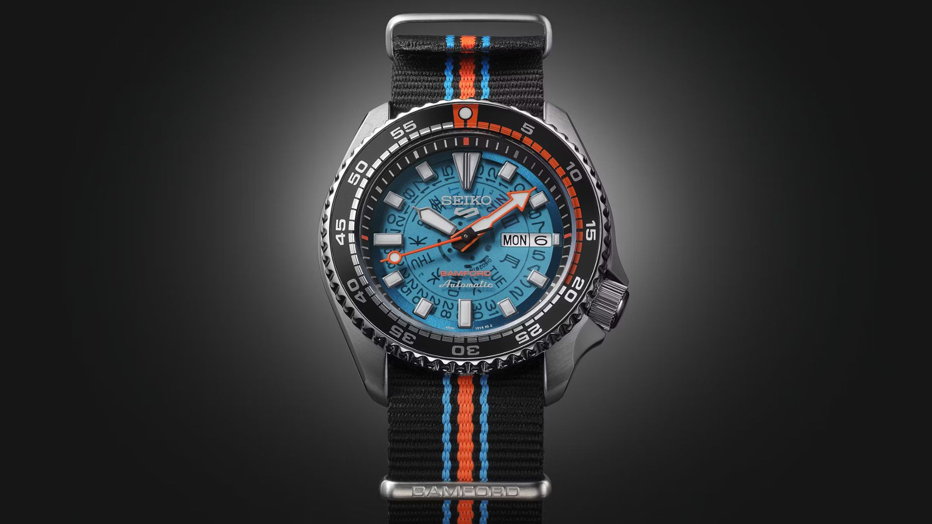 Seiko and Bamford have joined forces once again, this time delivering a bold take on the beloved Seiko 5 Sports line. Meet the SBSA315, a 42.5mm diver that blends vintage DNA with playful modern touches. Inspired by the cult-classic SKX007 and the retro Time Sonar models of the ’70s, this watch isn’t just about telling time—it’s about catching eyes.