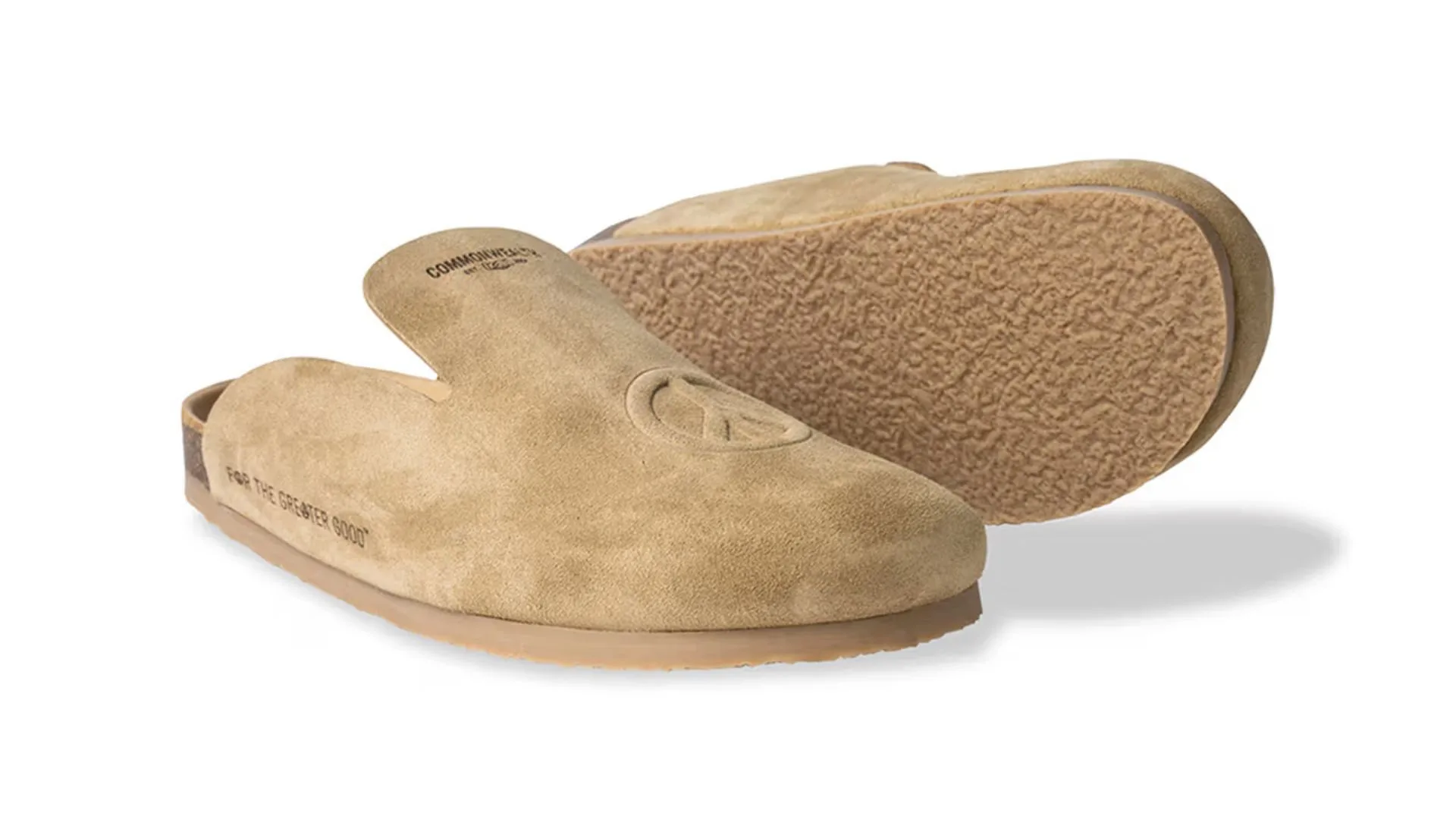 The mule’s slip-on design and round toe box help you get out the door in a matter of seconds without suffocating your feet just to stay on. To top it all off, the Commonwealth logo and “For The Greater Good” have been laser etched onto the shoe for some subtle detailing, while “peace” and “anarchy” are embossed at the very tip of the shoe and help you distinguish the right from the left.