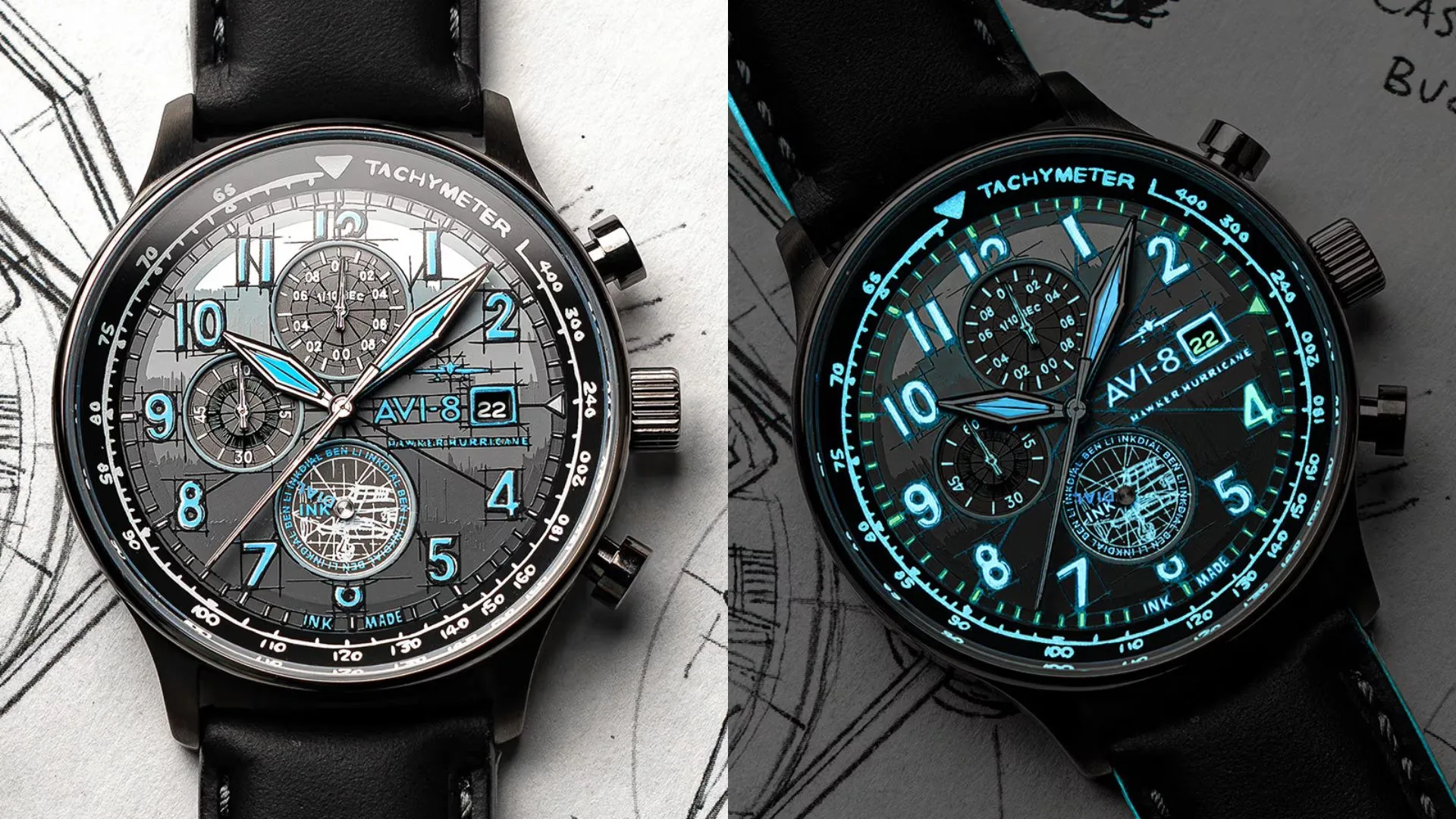 Blueprints are oftentimes the foundation of a great work of art. From buildings to even paintings, each creation needs a solid bedrock in order to take shape. It is this very idea that AVI-8 captures with the brand new Hawker Hurricane Inkdial Chronograph.