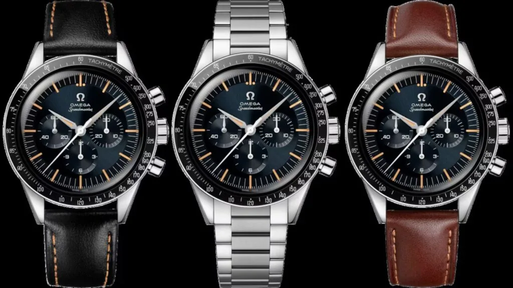The most noticeable change is the thickness. The new model, which measures 13.4 mm, is not only thinner than its predecessors but also contains the most recent version of the calibre that drove the first FOiS models, the Co-Axial Master Chronometer Calibre 3861. A Seahorse medallion, the words “SPEEDMASTER,” “THE FIRST OMEGA IN SPACE,” and the date “OCTOBER 3, 1962” are all stamped on the caseback.