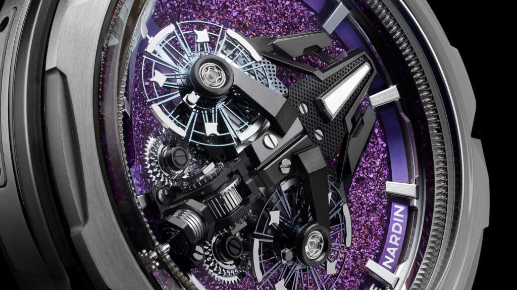 The 45mm titanium case of the Ulysse Nardin Freak S Watches of Switzerland Centenary Edition is coated in anthracite PVD, and the bezel is made of grey titanium. Its watch face, with its unique dial-less design and flawless UN-251 Manufacture movement, presents an amazing, spaceship-like spectacle.