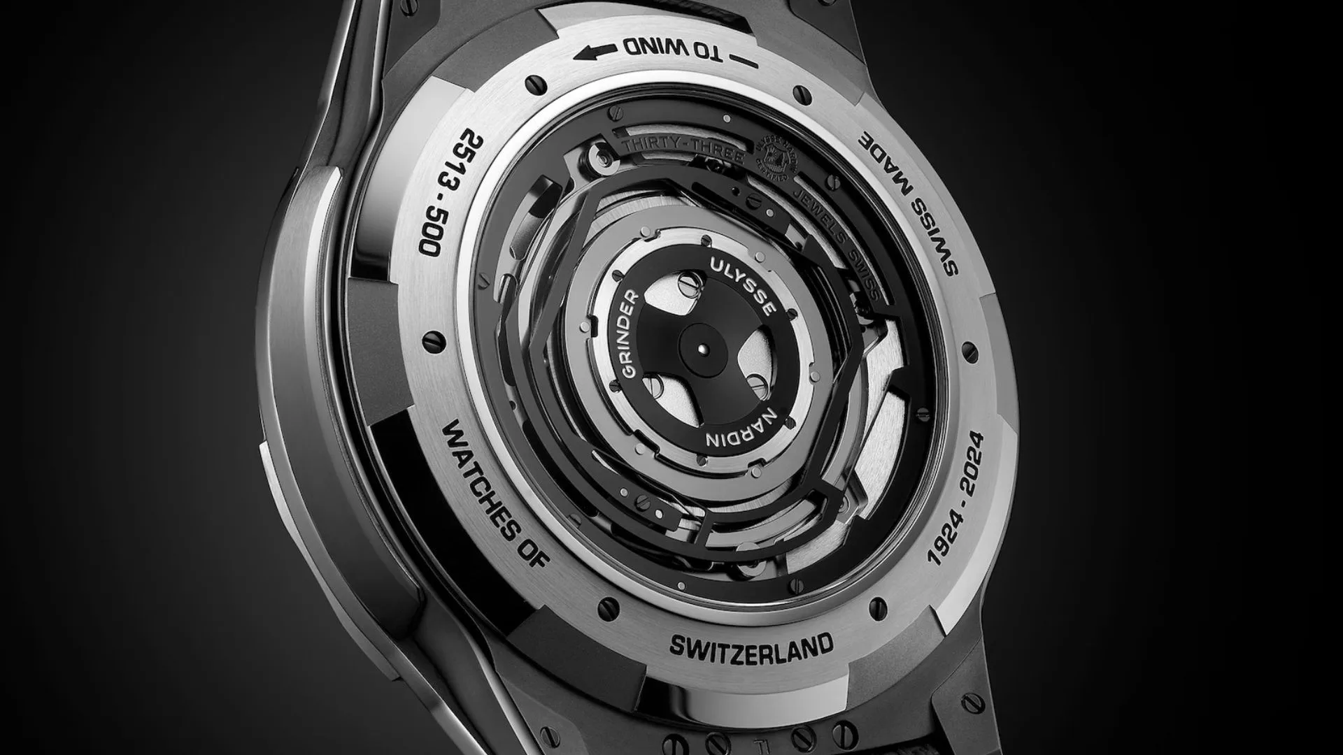 The 45mm titanium case of the Ulysse Nardin Freak S Watches of Switzerland Centenary Edition is coated in anthracite PVD, and the bezel is made of grey titanium. Its watch face, with its unique dial-less design and flawless UN-251 Manufacture movement, presents an amazing, spaceship-like spectacle.