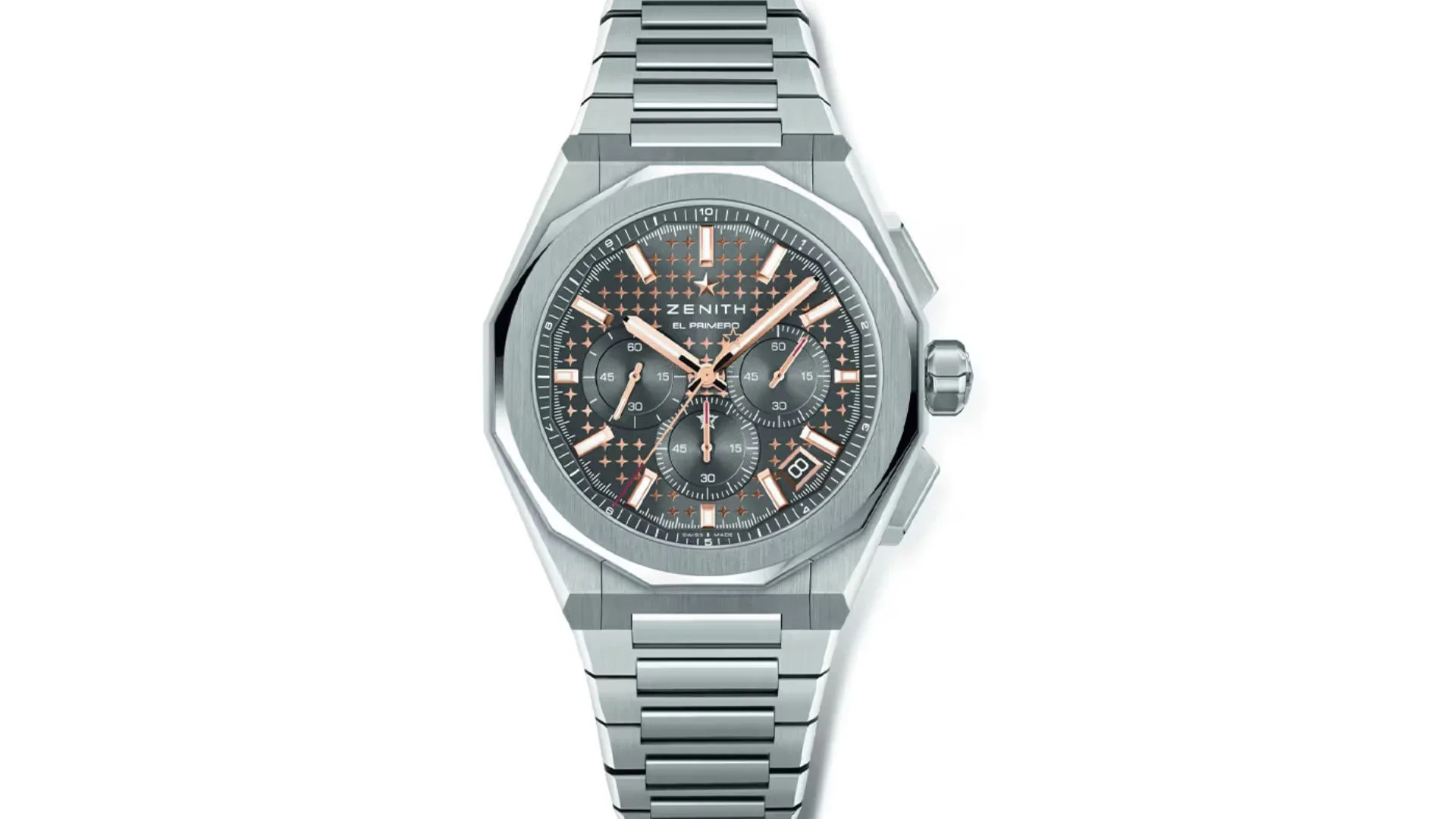The timepiece features a stunning 42mm stainless steel case, boasting Zenith’s iconic octagonal shape with a multi-faceted bezel. The watch body boasts rugged and sharp corners that emphasise an aggressive yet equally elegant design that synergises well with the main case.
