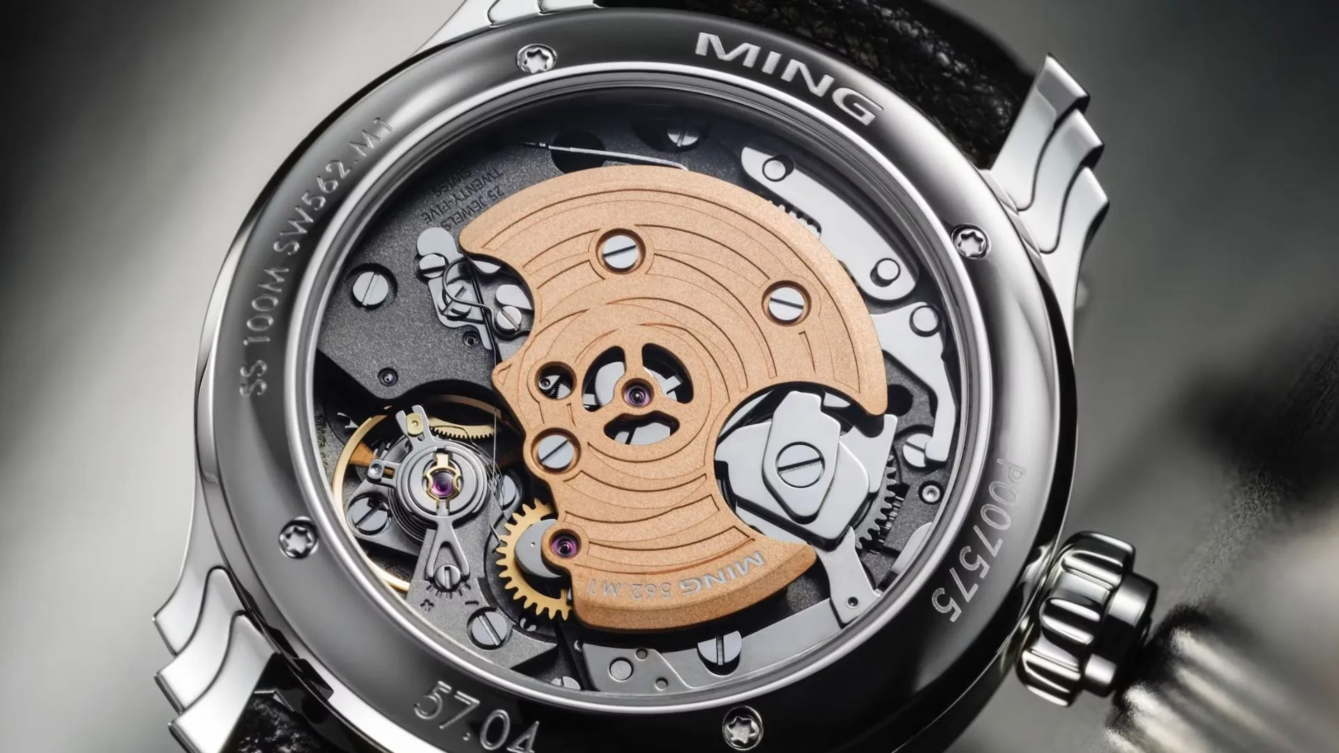 The 57.04 Iris stands out with a dial that shifts between purple, blue, and green, creating a captivating play of colour. Its laser-cut luminous indices sit beneath the sapphire crystal, while a black chronograph counter at six o’clock adds sharp contrast. Inside, the customised Sellita SW562.M1 movement delivers a 60-hour power reserve with chronograph functions, finished with an anthracite mainplate and gold plate that showcase Ming’s mix of precision and elegance.