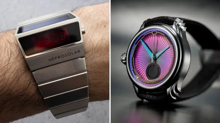 Malaysia’s Ming brings a colour-changing chronograph that shifts between purple, blue, and green, while Switzerland’s Nepro revives a wild 70s design with solar power and OLED displays. These conversation starters prove that watchmaking is still full of surprises.