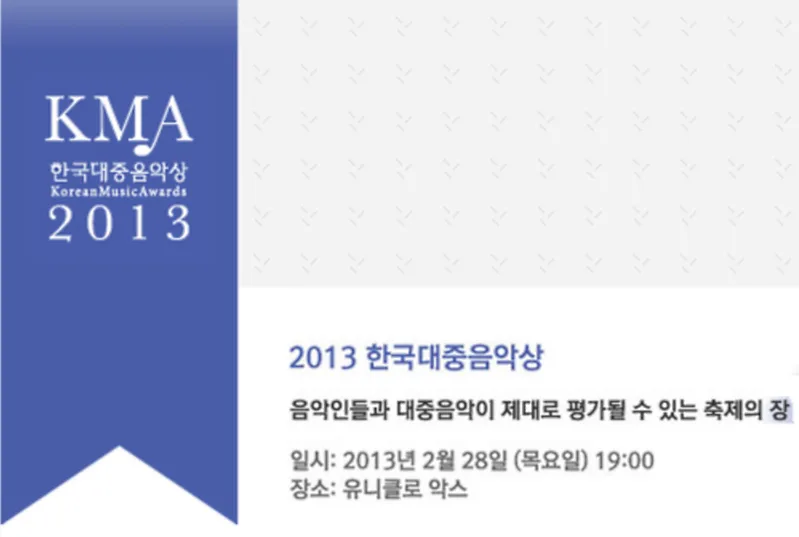 First held in 2004, the Korean Music Awards (KMA) acknowledges the achievements made by Korean artistes in the past year. Unlike the majority of other major music awards in their country, the KMAs do not take sales into consideration. The winners (excluding the “Netizen’s Choice Award”) are fully determined by a panel of music critics and industry experts, similar to the Grammy Awards in the USA.