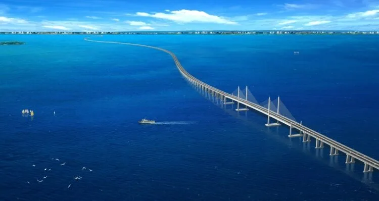 Travelling time on the bridge is estimated to take about 30 minutes at 80kph.